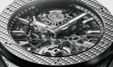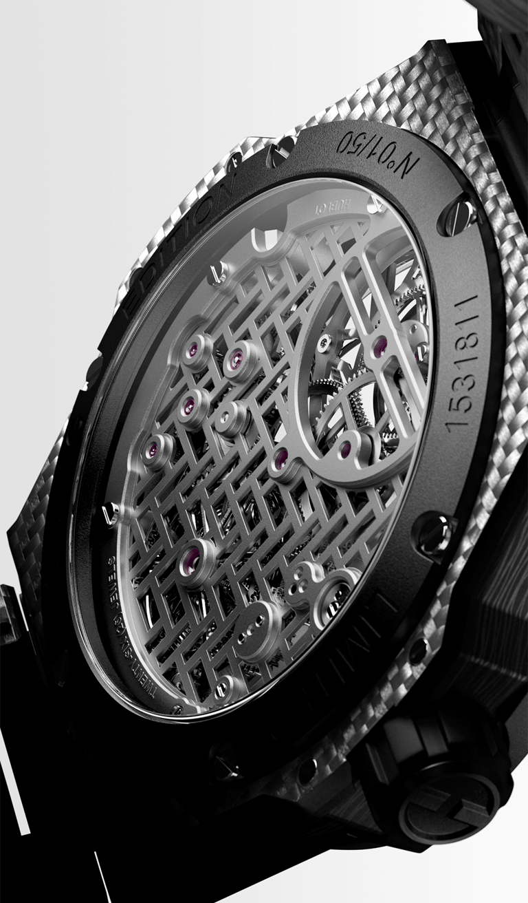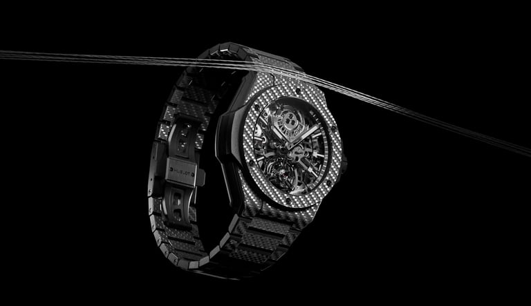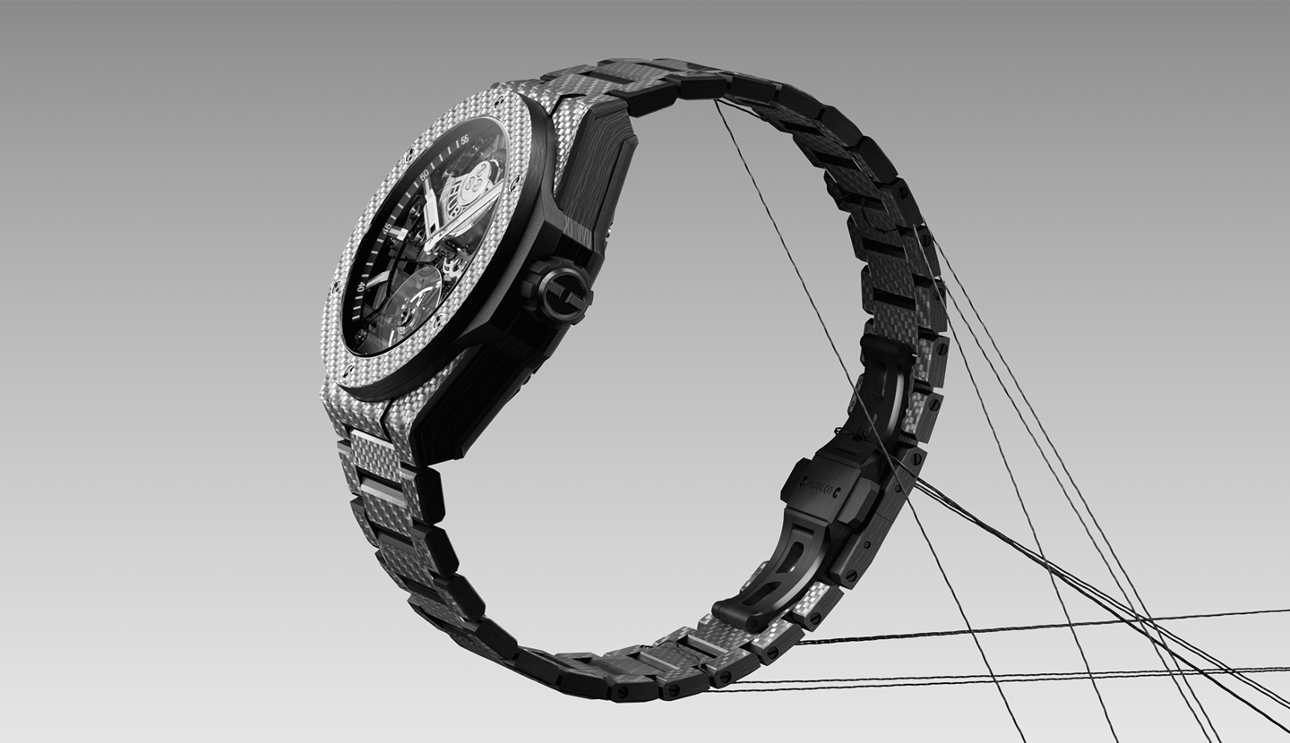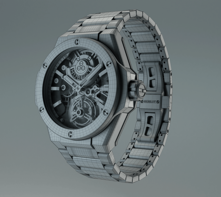 For this project with Hublot, produced by Ditroit Studio, the Integrated Tourbillon Full Carbon timepiece was faithfully reconstructed in 3D, preserving its technical sophistication and distinctive carbon aesthetic.