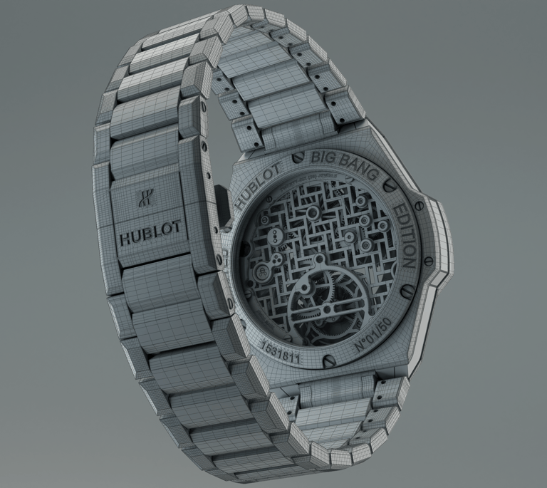 The digital model was crafted with high-precision geometry, intricate detailing, and seamless surface transitions to reflect the lightweight construction and innovative materials characteristic of the watch.
