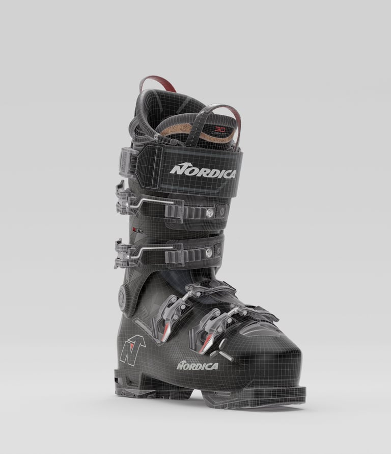 For this Nordica Promachine 3 ski boots project produced by REEF Studios, the product was digitally recreated with a strong focus on accuracy and realism. The work involved detailed 3D modeling of the boot’s structure, materials, and surface features, ensuring a faithful representation of the original design and craftsmanship.